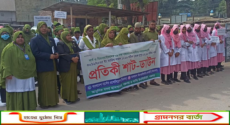 ৮ দফা দাবিতে পঞ্চগড়ে নার্স ও মিডওয়াইফদের দুই ঘন্টার প্রতিকী শাটডাউন পালিত