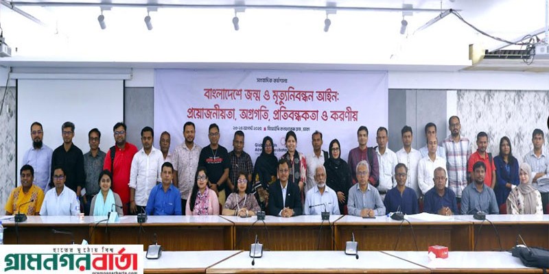 বাংলাদেশে শতভাগ জন্ম ও মৃত্যু নিবন্ধন নিশ্চিত করতে বিদ্যমান আইনকে আরও শক্তিশালী ও যুগোপযোগী করা অপরিহার্য। জাতিসংঘের আঞ্চলিক সংস্থা ইউএনএসকাপ ঘোষিত সিভিল রেজিস্ট্রেশন অ্যান্ড ভাইটাল স্ট্যাটিস্টিকস (সিআরভিএস) দশকের আওতায় বাংলাদেশ সরকার ২০৩০ সালের মধ্যে শতভাগ জন্ম এবং মৃত্যু নিবন্ধন নিশ্চিত করতে প্রতিশ্রুতিবদ্ধ। এসডিজি’র ১৬.৯ লক্ষ্যমাত্রায় জন্ম নিবন্ধনসহ সকলের জন্য বৈধ পরিচয়পত্র প্রদানকে অগ্রাধিকার দেওয়া হয়েছে। দেশের সকল হাসপাতাল কর্তৃপক্ষকে আইনগত ভবে নিবন্ধনের দায়িত্ব প্রদান করা হলে জন্ম ও মৃত্যু নিবন্ধনে কাঙ্ক্ষিত লক্ষ্যমাত্রা অর্জন সম্ভব হবে। রাজধানীর বিআইপি কনফারেন্স রুমে ২৩-২৪ আগস্ট ২০২৫ এ অনুষ্ঠিত “বাংলাদেশে জন্ম ও মৃত্যু নিবন্ধন: অগ্রগতি, প্রতিবন্ধকতা ও করণীয়” শীর্ষক দুই দিনব্যাপী সাংবাদিক কর্মশালায় এসব বিষয় তুলে ধরেন আলোচকবৃন্দ। গ্লোবাল হেলথ অ্যাডভোকেসি ইনকিউবেটর (জিএইচএআই) এর সহযোগিতায় প্রজ্ঞা (প্রগতির জন্য জ্ঞান) এই কর্মশালার আয়োজন করে। কর্মশালায় প্রিন্ট, টেলিভিশন এবং অনলাইন মিডিয়ায় কর্মরত ৩০জন সাংবাদিক অংশগ্রহণ করেন।