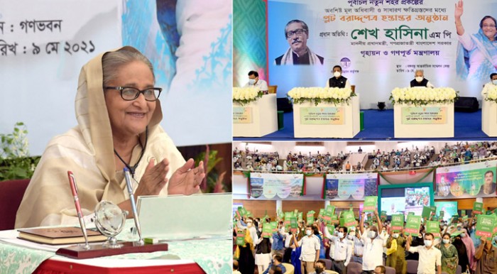অনুষ্ঠানে প্রধানমন্ত্রী শেখ হাসিনার পক্ষে গৃহায়ন ও গণপূর্ত প্রতিমন্ত্রী শরীফ আহমদ অধিবাসী ও ক্ষতিগ্রস্তদের হাতে প্লটের বরাদ্দপত্র তুলে দেন। মোট ১ হাজার ৪৪০ জন মূল অধিবাসী এবং সাধারণ ক্ষতিগ্রস্তকে প্লট বরাদ্দ দেওয়া হয়।