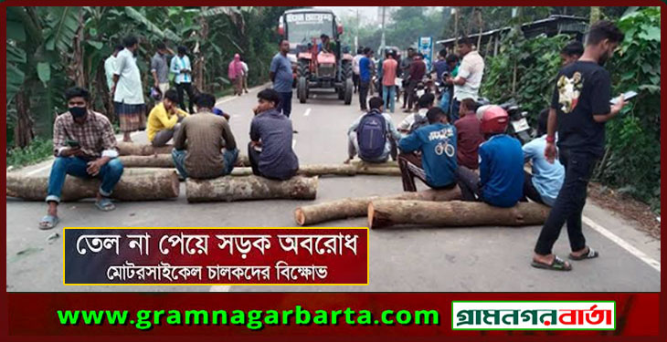 জ্বালানি তেল না পেয়ে রাস্তা অবরোধ মোটরসাইকেল চালকদের