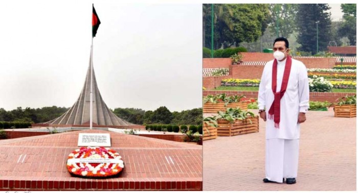 বঙ্গবন্ধু শেখ মুজিবুর রহমানের জন্মশতবার্ষিকী এবং স্বাধীনতার সুবর্ণজয়ন্তী উপলক্ষে আয়োজিত অনুষ্ঠানে যোগ দিতে ঢাকায় এসে প্রথমে জাতীয় স্মৃতিসৌধে শহীদ বীর মুক্তিযোদ্ধাদের প্রতি ফুল দিয়ে শ্রদ্ধা জানিয়েছেন বাংলাদেশে সফররত শ্রীলঙ্কার প্রধানমন্ত্রী মাহিন্দা রাজাপাকসে।