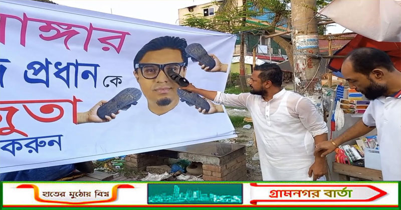 শিবচরে জাগপা মুখপাত্র রাশেদ প্রধানের ছবিতে যুবদলের জুতা নিক্ষেপ