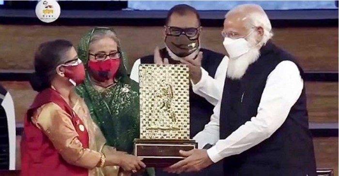 শেখ হাসিনা-রেহানার হাতে বঙ্গবন্ধুর ‘গান্ধী পুরস্কার’ তুলে দিলেন মোদি