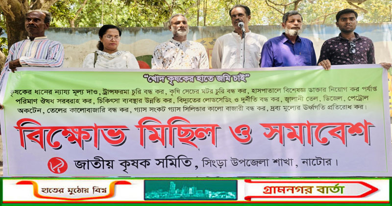 সিংড়ায় কৃষক স্বার্থ রক্ষায় জাতীয় কৃষক সমিতির বিক্ষোভ ও সমাবেশ